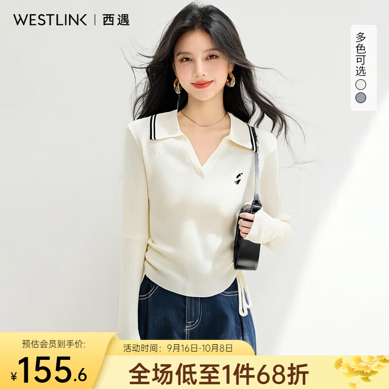 西遇翻领长袖针织衫女2025年秋季新款辣妹系带收腰修身显瘦毛衣 白色 (预售15天) M (160)