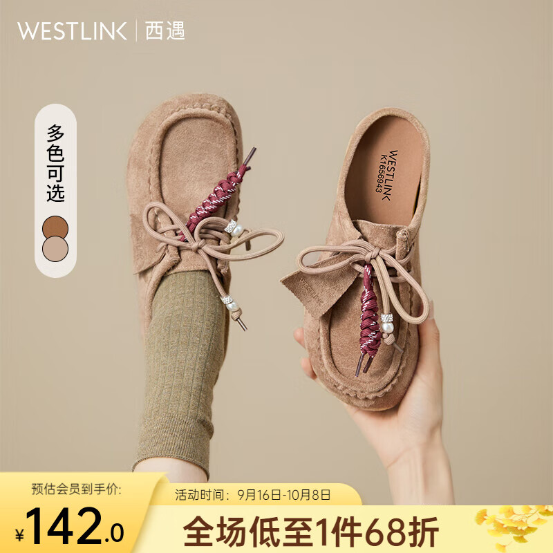 西遇袋鼠勃肯鞋女2025新款秋季复古系带串珠一脚蹬软底博肯半拖鞋 驼色 37 (235)