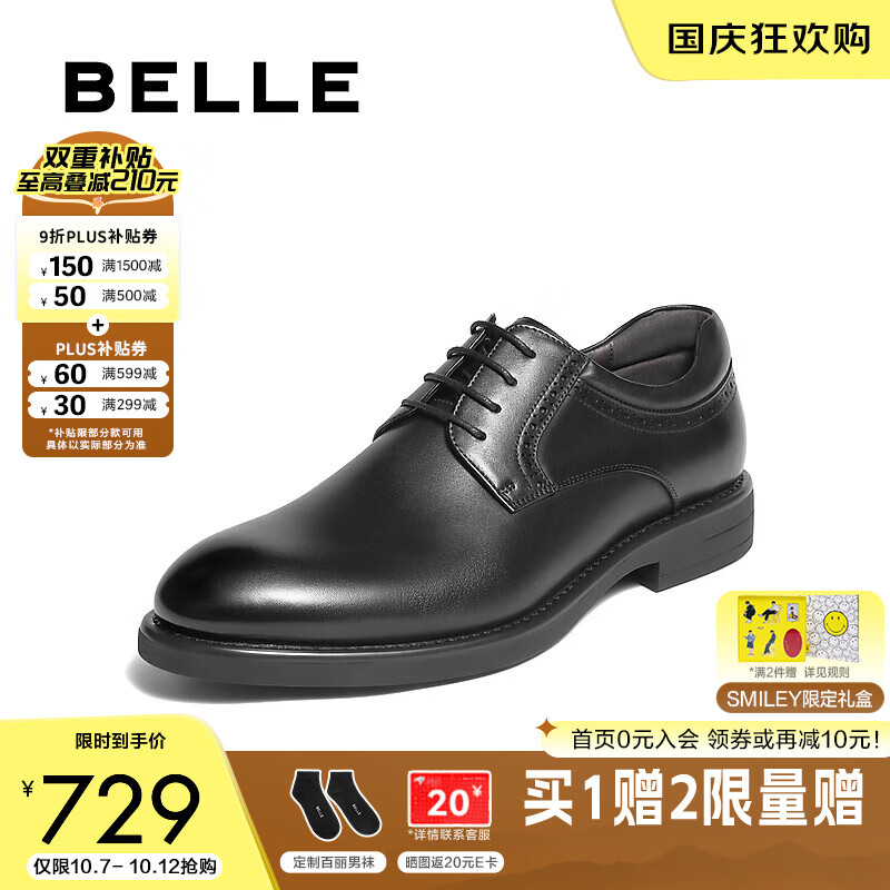 百丽绅士商务皮鞋男25冬新商场同款牛皮革正装鞋加绒8VS01DM5 黑色-单里 41 (255mm)