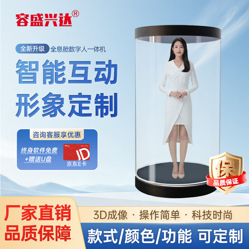 容盛兴达AI全息仓虚拟迎宾数字人裸眼3d立体悬浮成像智能主持人讲解员问答互动广告显示器透明屏展示柜定制 定制款定金咨询客服