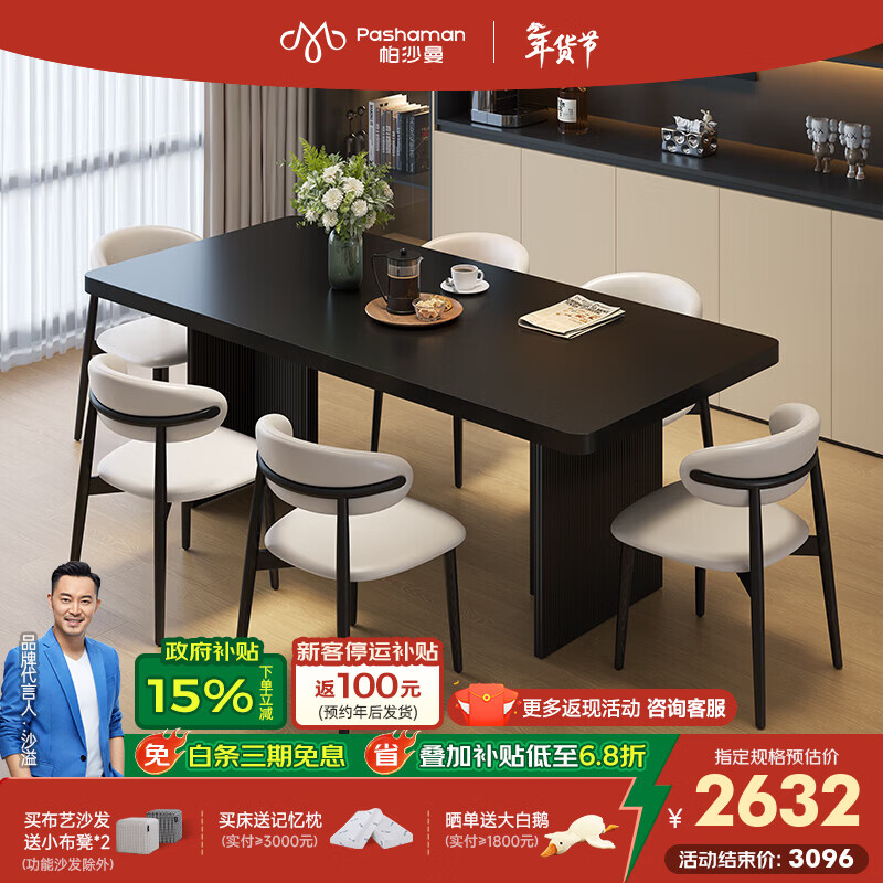 帕沙曼全托岩板电磁炉餐桌小户型轻奢现代简约长方形饭桌椅 6454Y 【不带电磁炉】餐桌+4椅(6156Y) 160cm *80cm*75cm