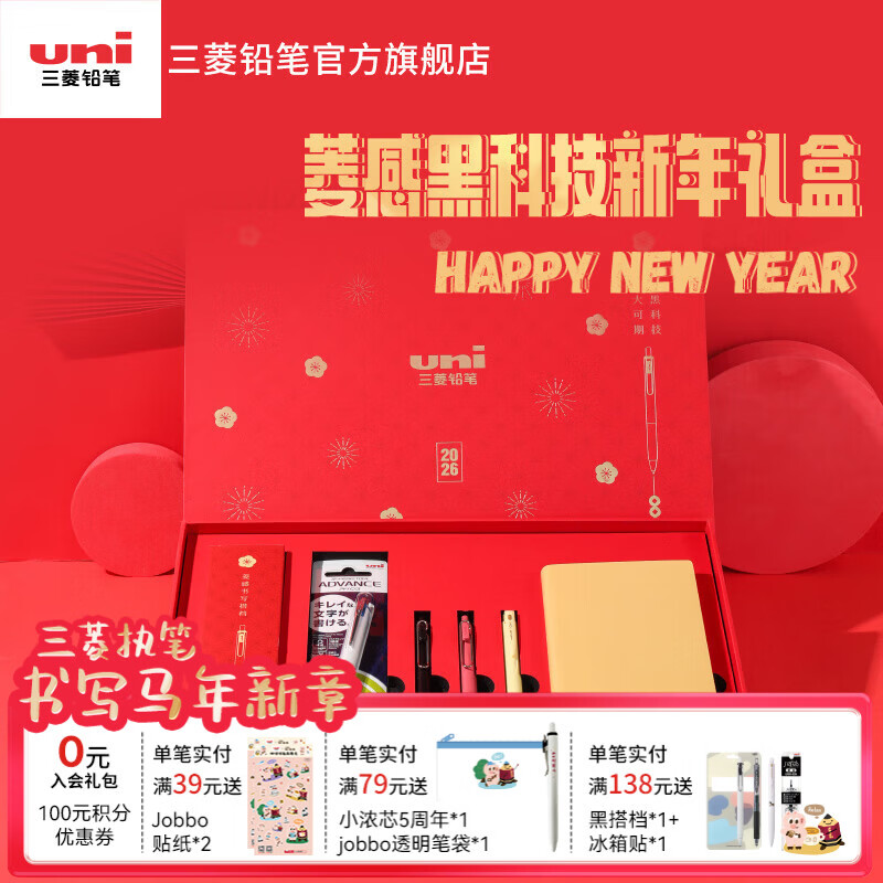 uni三菱铅笔2026马年新年礼盒菱感黑科技高颜值伴手礼手账本礼盒文具套装黑笔学生毕业生日礼物
