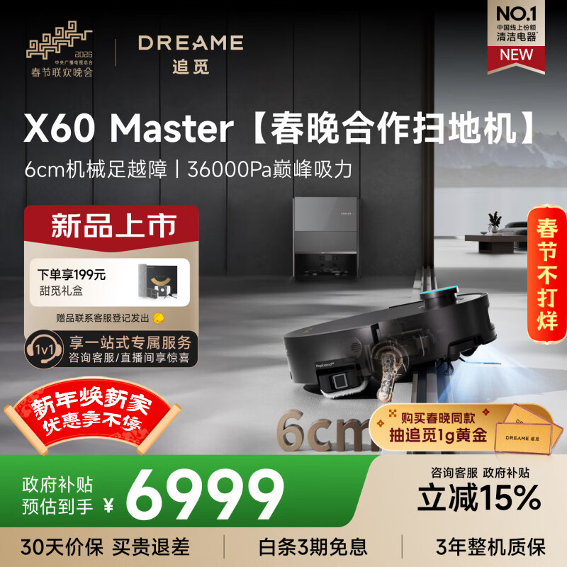 追觅【春晚合作扫地机】X60Master扫地机器人扫拖洗烘一体履带自清洗洗地机器人热水洗水箱版RLZ83DE
