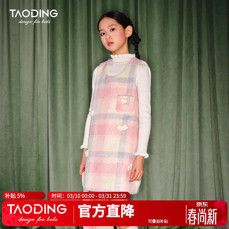淘町淘町女童格纹连衣裙秋冬新款加厚保暖2026新款洋气大童拜年背心裙 粉色 格纹背心裙 120 45-50斤