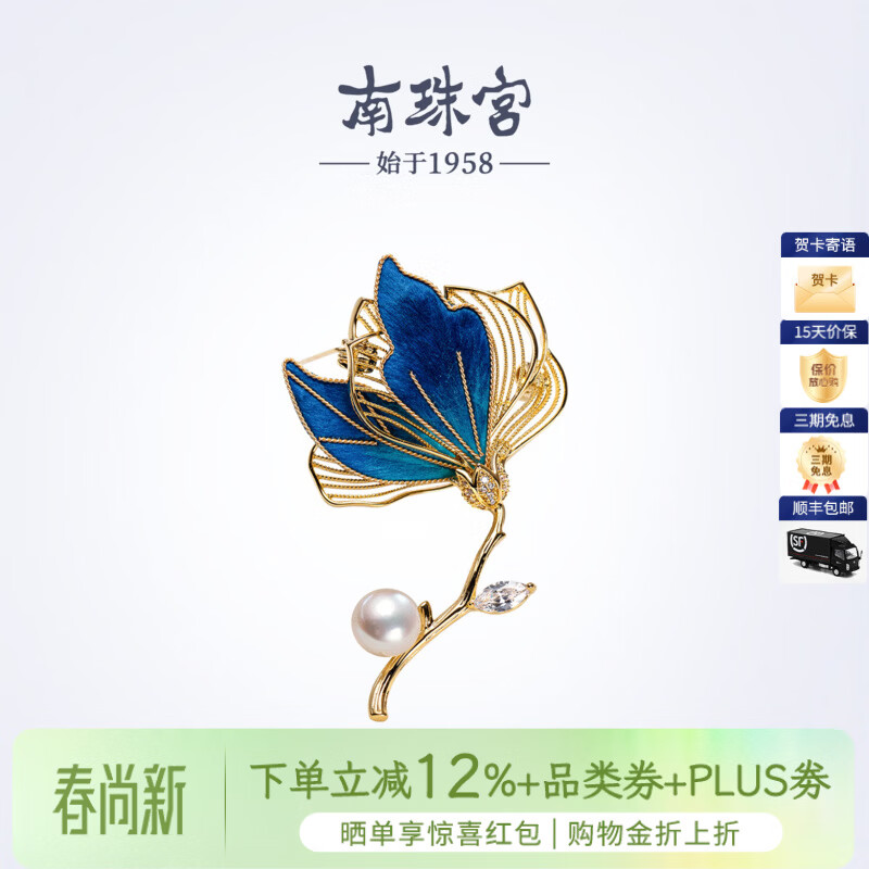 南珠宫丝绒花淡水珍珠胸针优雅百搭新年礼物送礼女H104D-J 9.0-10.0mm