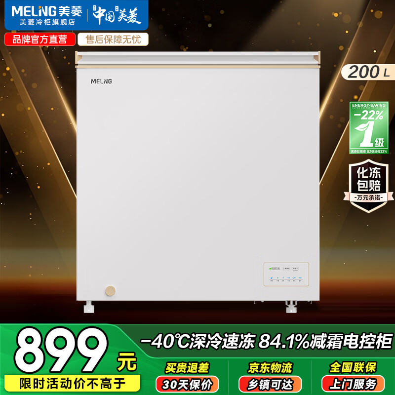 美菱(MeiLing)小美满200升单温家用冷柜电控变频节能新一级深冷速冻大冷冻力囤货钢胆BC/BD-200DTPCX1 杏运灰 200升 BC/BD-200DTPCX1