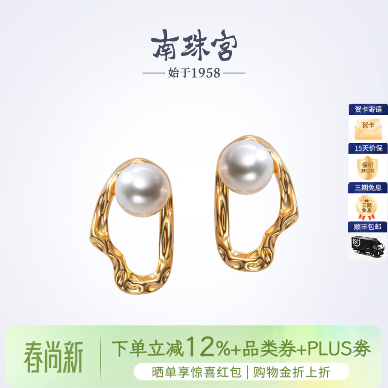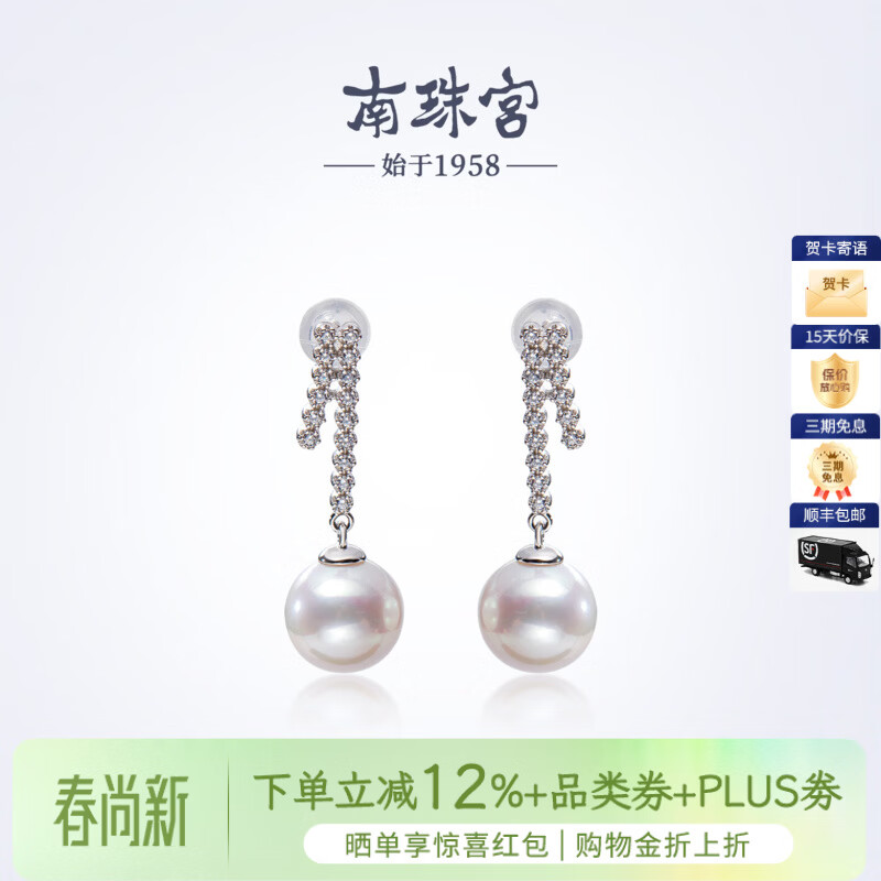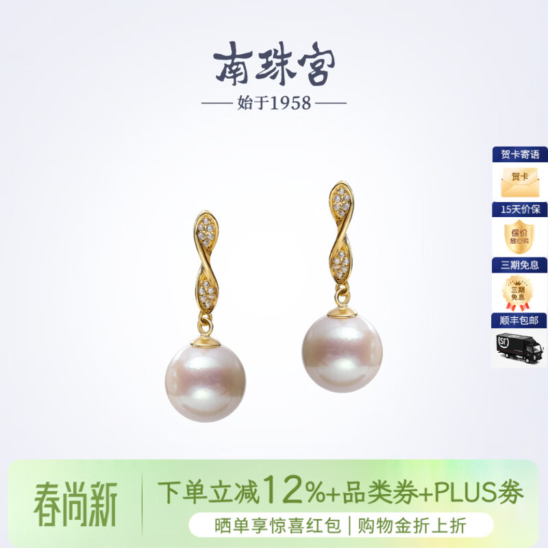南珠宫霜絮珍珠耳环925银天然淡水珍珠耳饰耳钉年轻款生日礼物送女友 10.0-11.0mm 925银淡水珍珠耳环