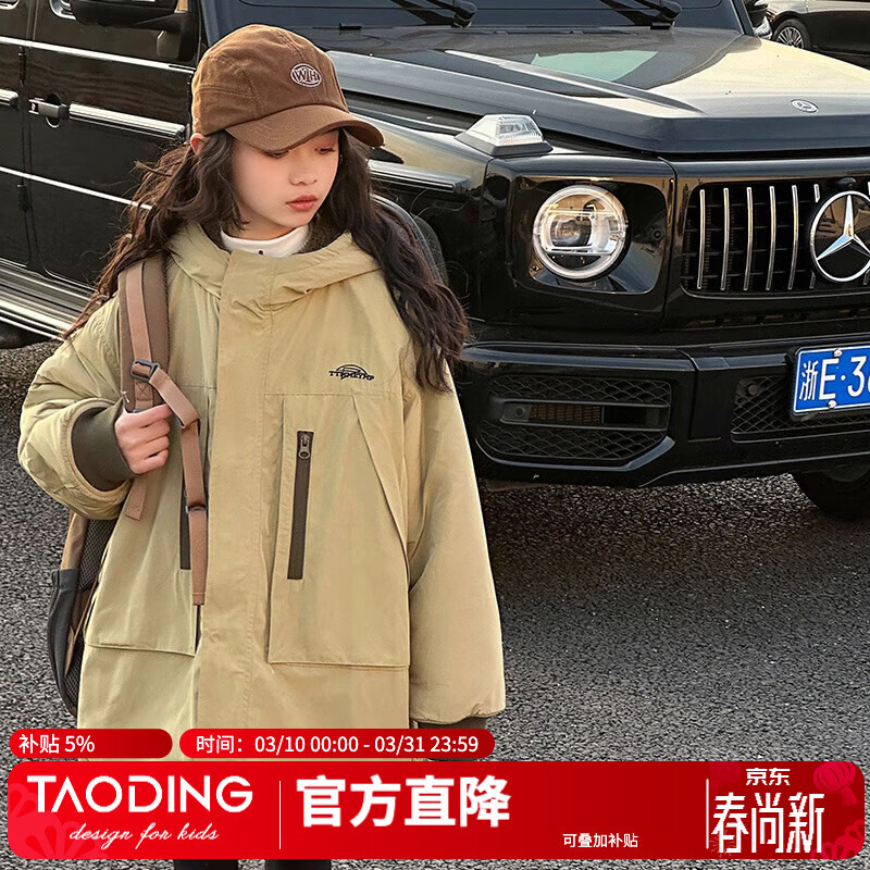 淘町双面加绒女童风衣秋冬新款中大童加厚长袖连帽保暖两面穿外套 军绿色 【正反双面穿,一体厚绒内里】 170
