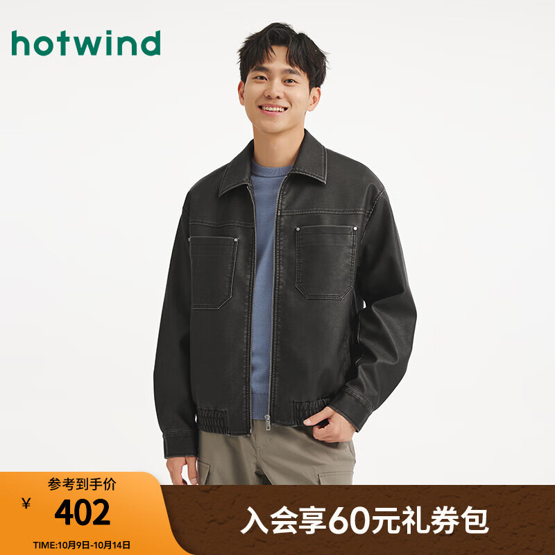 热风【商场同款】男士PU夹克外套经典机车风外套2025年秋新款拉链外套 01黑色 M