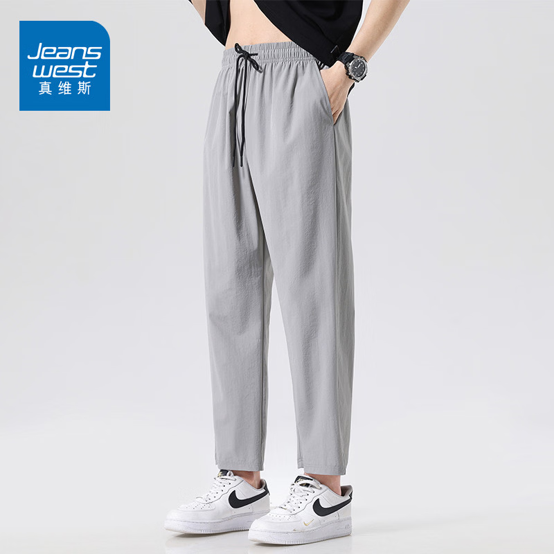 真维斯(Jeanswest)2026速干休闲裤男士夏季薄款宽松直筒长裤男生冰丝垂感运动长裤子 浅灰 【冰丝薄款】 XL 建议体重【120-135斤】