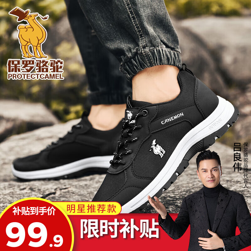 保罗骆驼运动休闲鞋男 2026夏季轻便户外软底登山鞋 舒适透气网面鞋 【黑色】 HB2436 42 【标准运动鞋码】