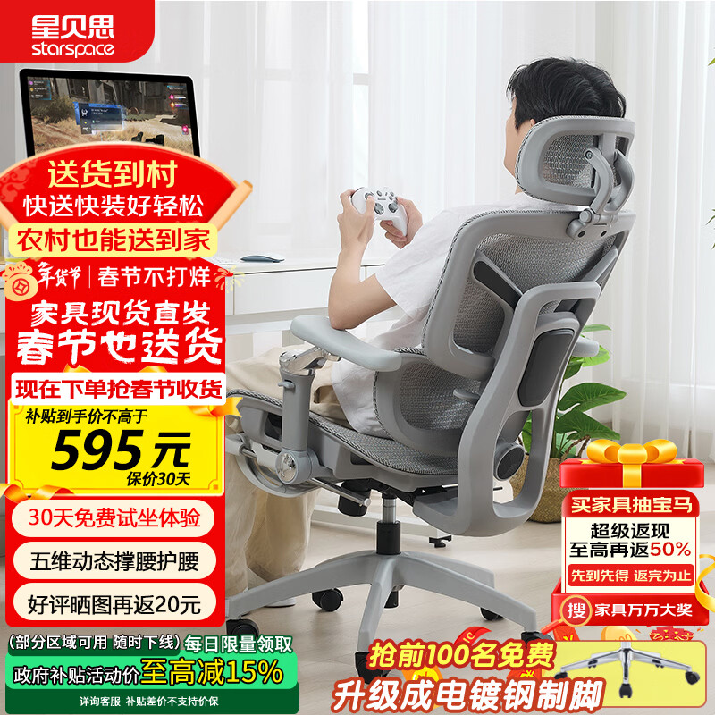 STARSPACE电脑椅人体工学椅护腰久坐学习办公椅子人工力学椅电竞椅靠背椅子