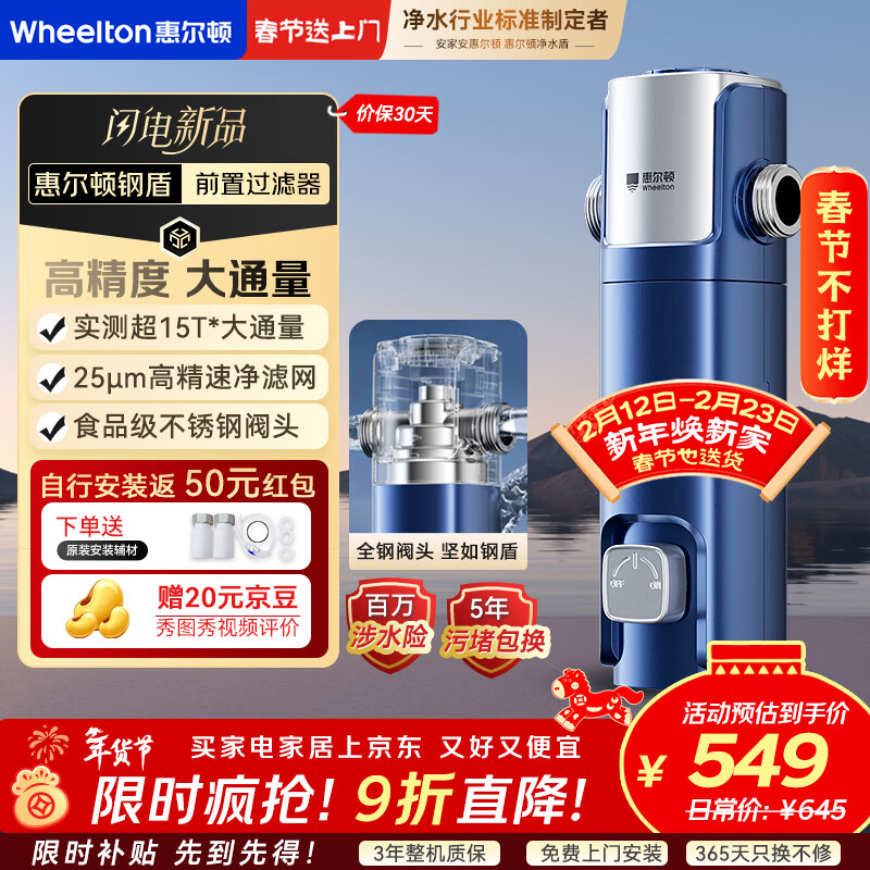 惠尔顿(WHEELTON)前置过滤器自动清洗超15T大通量不锈钢防冻防爆25微米全屋家用净水器滤水器钢盾P0038Ultra