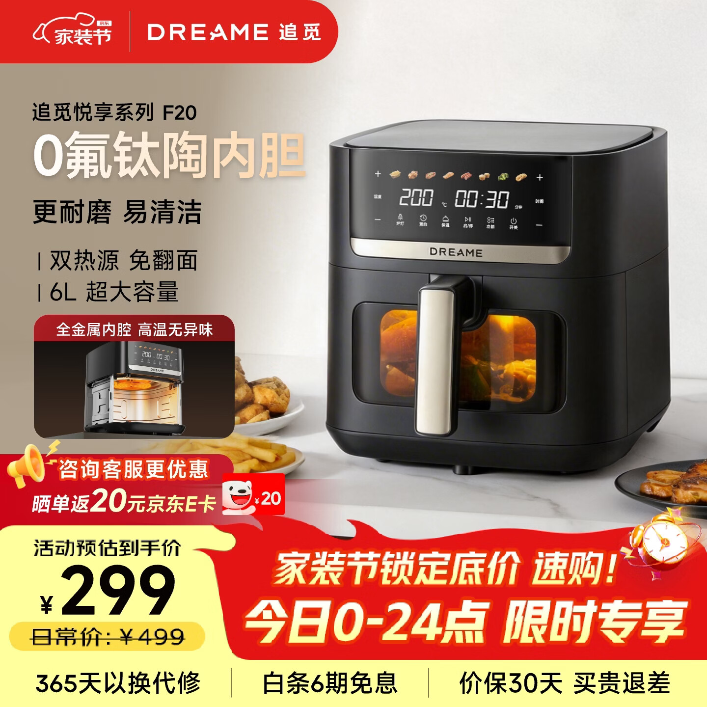 追觅空气炸锅F20 蒸烤一体 6L 家用大容量 双热源免翻面 0氟钛陶烤盘 全金属内腔 可视大视窗 国家补贴