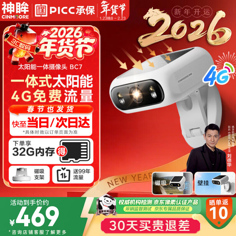 神眸一体式太阳能摄像头室外4G终身免流量AOR低功耗监控器24h一直录不漏拍360度无死角夜视手机远 BC7
