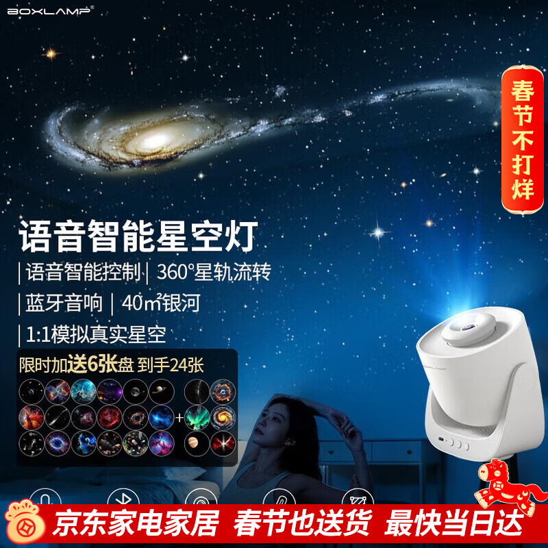 BOXLAMP星空灯投影灯2代智能语音氛围灯新款床头卧室声控蓝牙小夜睡眠灯 顶配18张套【限时加赠6张盘】 二代智能语音版