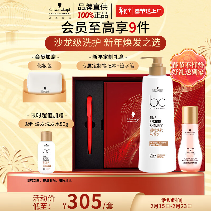 施华蔻专业Q10洗护新年礼盒洗发水500g+玫瑰精油30ml柔顺养发送礼年高端礼物