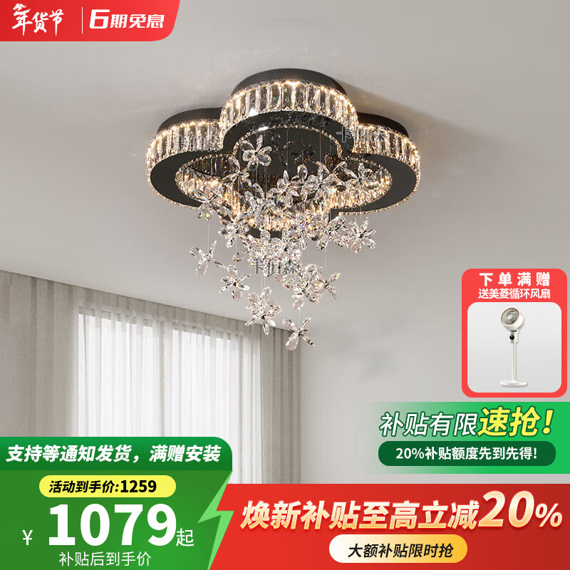 卡伯森意式极简卧室水晶吸顶灯现代轻奢大气高级感别墅艺术花瓣书房灯 透明色花款-直径52*高47CM【无极+天猫精灵】