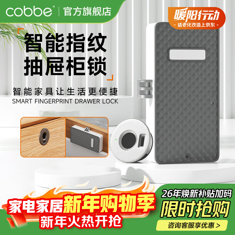 卡贝(cobbe)指纹锁室内智能密码锁办公桌抽屉锁柜子锁家用柜门锁衣柜锁家具锁 指纹抽屉锁-蓝牙解锁【APP管理】