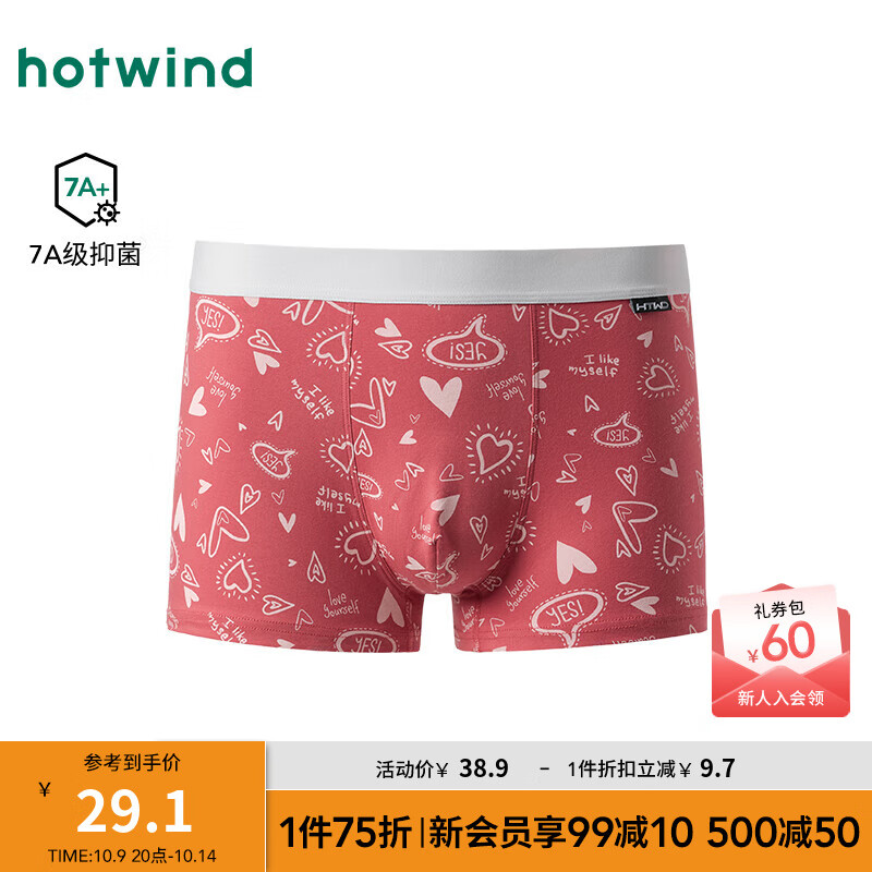 热风男士内裤2025年秋季新款字母爱心平角内裤抑菌亲肤平角内裤棉 21红白 XL