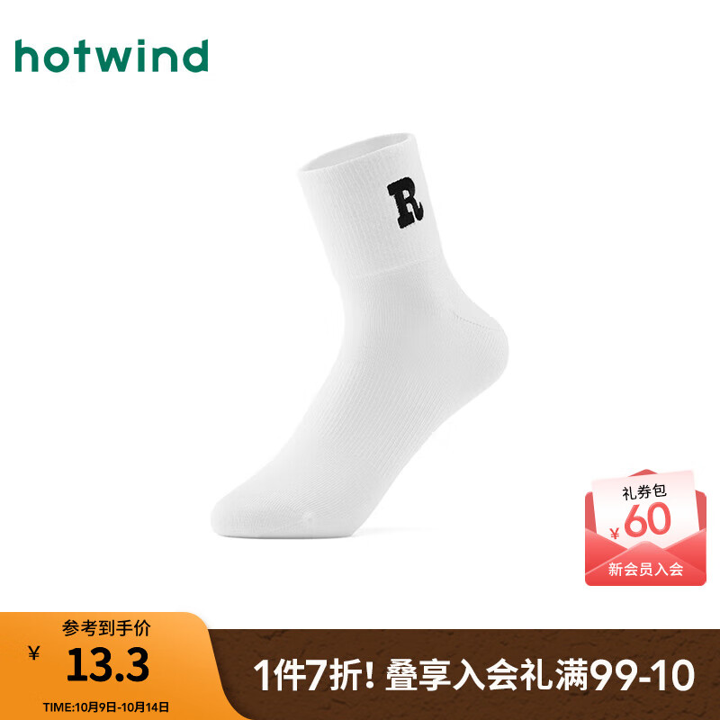 热风【商场同款】女士袜子2025年秋新款字母刺绣中帮袜简约运动中筒袜 04白色 1双 均码