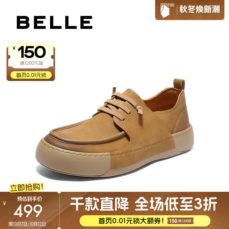 百丽(Belle)舒适厚底休闲鞋男2025秋季新款免系带潮搭户外工装鞋A2032CM5 黄色 40 (250mm)