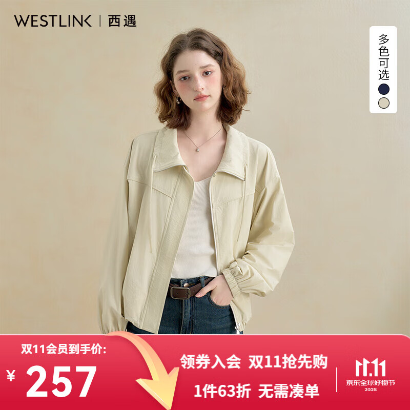 西遇美式复古工装夹克外套女2025秋季宽松显瘦棒球服通勤短款上衣 杏色 M
