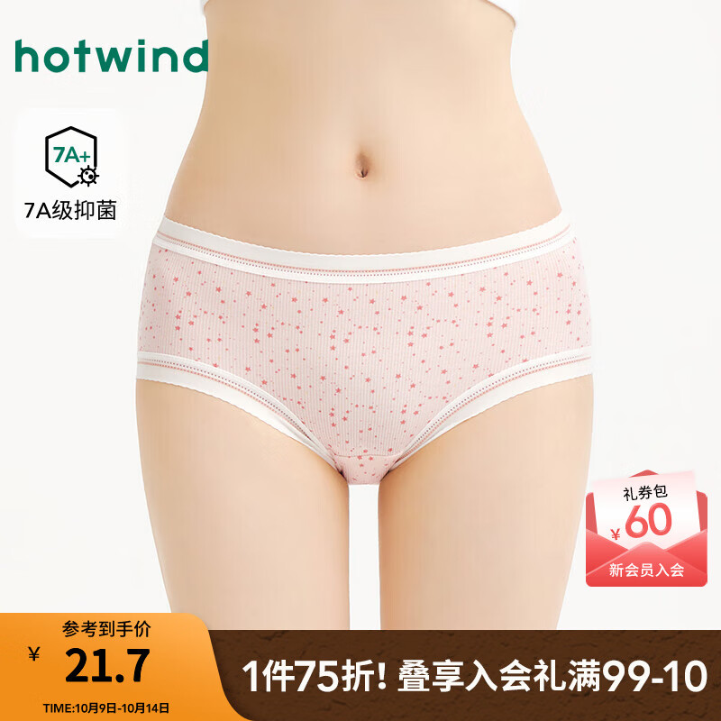 热风【商场同款】女士内裤2025年秋新款罗纹星星中腰抑菌少女印花短裤 14粉红 1条 M