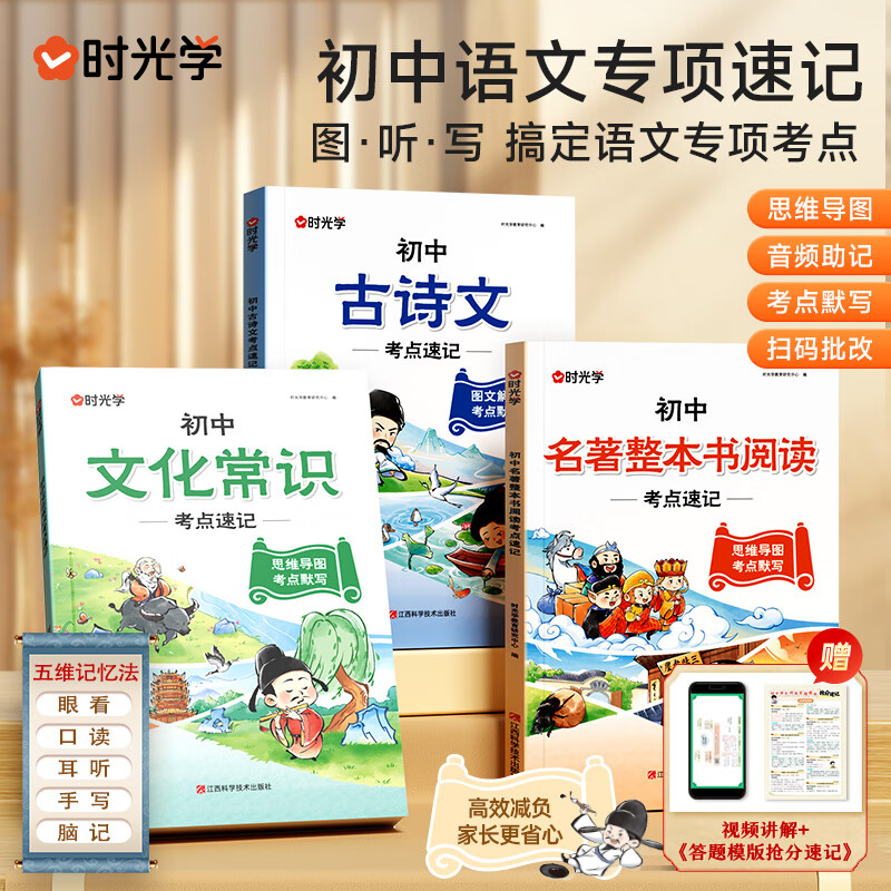 【当当】时光学初中文化常识考点速记 名著整本书阅读考点速记 诗文考点速记初中必背文学文化常识 七八九年级初一初二初三中考语文基础知识大全古现代必备 【全3册】初中语文专项考点速记(赠答题模板速记)