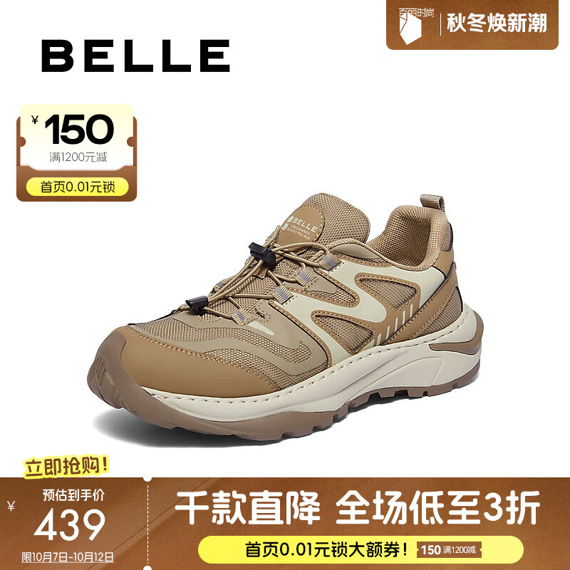 百丽(Belle)网面拼接户外休闲鞋男鞋2025秋季新款厚底增高运动鞋A2157CM5 卡其色 39 (245mm)