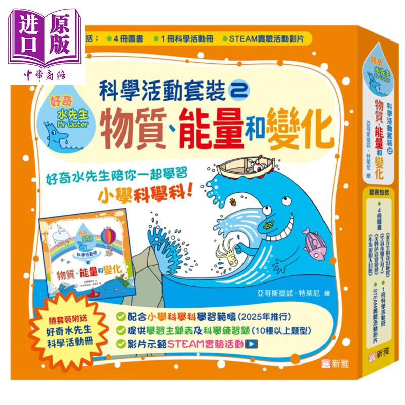 预售 好奇水先生科学活动套装2 物质 能量和变化 4册绘本+科学活动册 附练习题+STEAM实验活动视频 港台原版 儿童科普