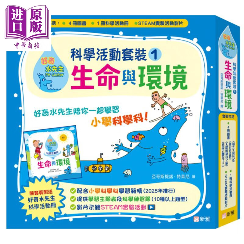预售 好奇水先生科学活动套装1 生命与环境 4册绘本+科学活动册 附练习题+STEAM实验活动视频 港台原版 小学科学 新雅