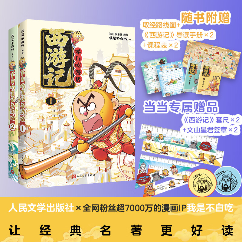 【当当正版包邮】漫话西游记1+2 我是不白吃绘编 传统文化普及 保留原著 单册套装自选 人民文学出版社 不白吃漫话西游记1+2