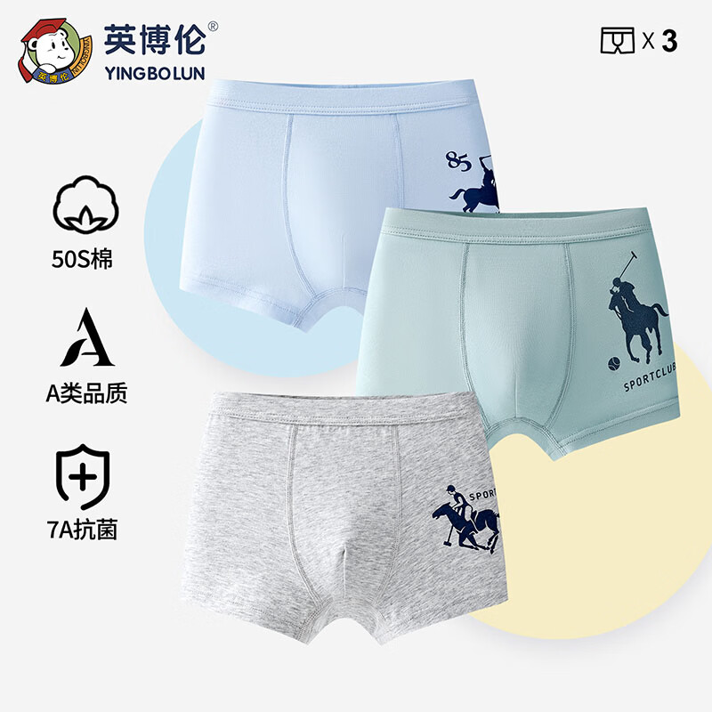 英博伦男儿童内裤纯棉A类男童平角裤宝宝四角大童抑菌短裤 10987 儿童内裤 3条 170