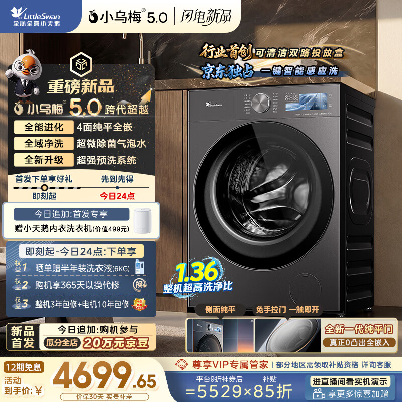 小天鹅(LittleSwan)小乌梅5.0跨代机皇 AWE同款 滚筒洗衣机全自动 带烘干洗烘一体 10KG纯平全嵌 TD10K60 以旧换新