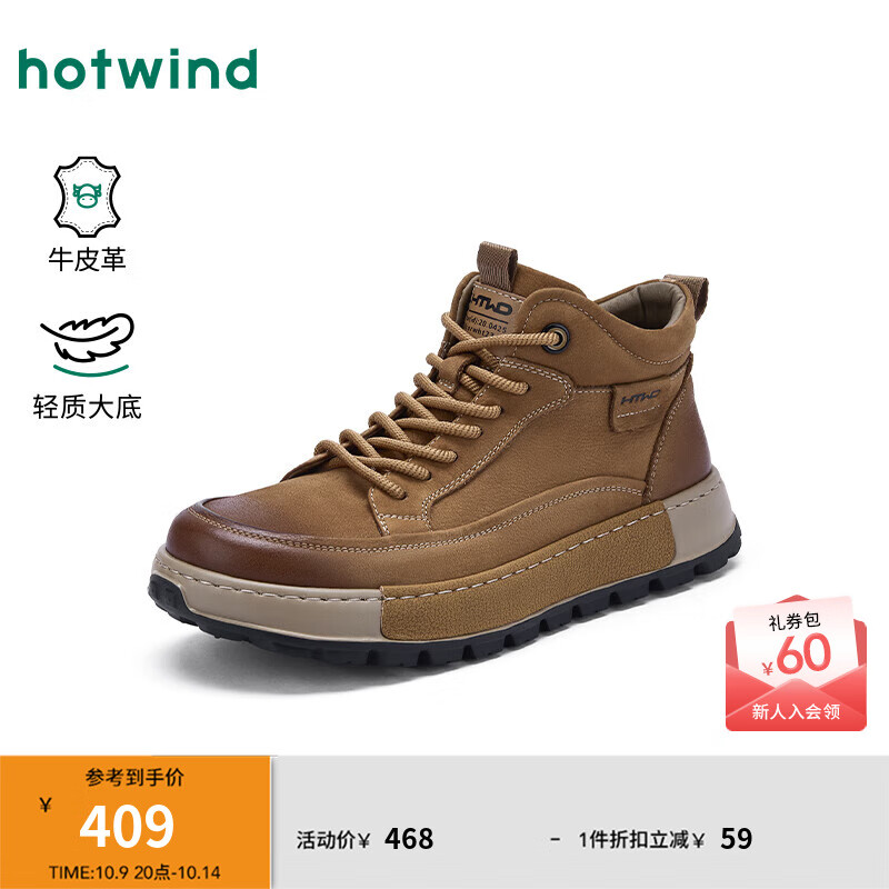热风男鞋2025年秋季新款男士休闲复古高帮鞋棕色百搭运动跑步鞋 02棕色 牛头层皮革 43