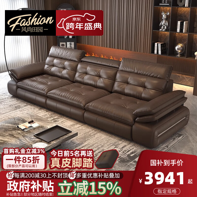 风尚田园升级版咖啡色劳伦斯沙发意式真皮沙发客厅高端直排头层牛皮沙发简 3.6米