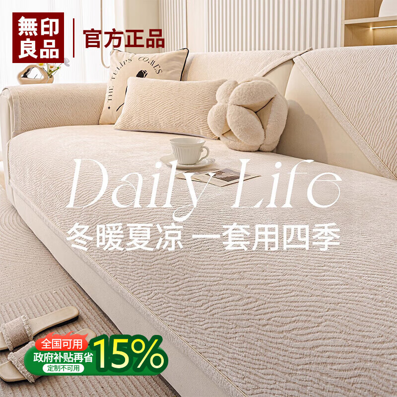 无印良品沙发垫四季通用奶油风雪尼尔沙发座垫防猫抓沙发坐垫皮沙发专用垫 琥纹-米色 【温柔奶油风 耐磨抗起球】 70*210cm (三人位 )