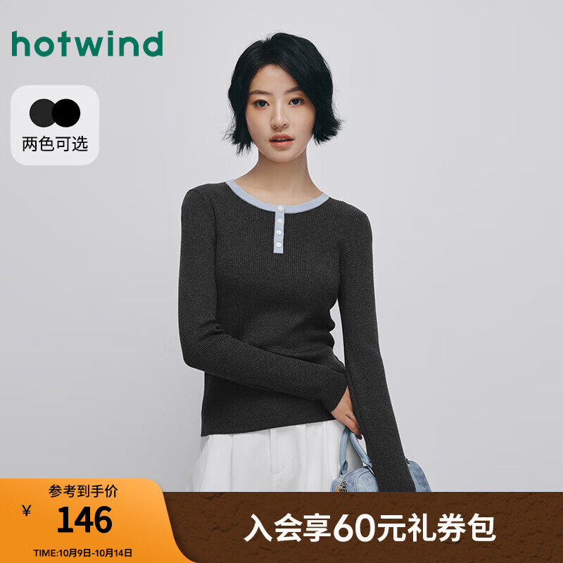 热风【商场同款】女士打底衫上衣2025年秋新款修身针织衫贴身显瘦内搭 52深灰 L
