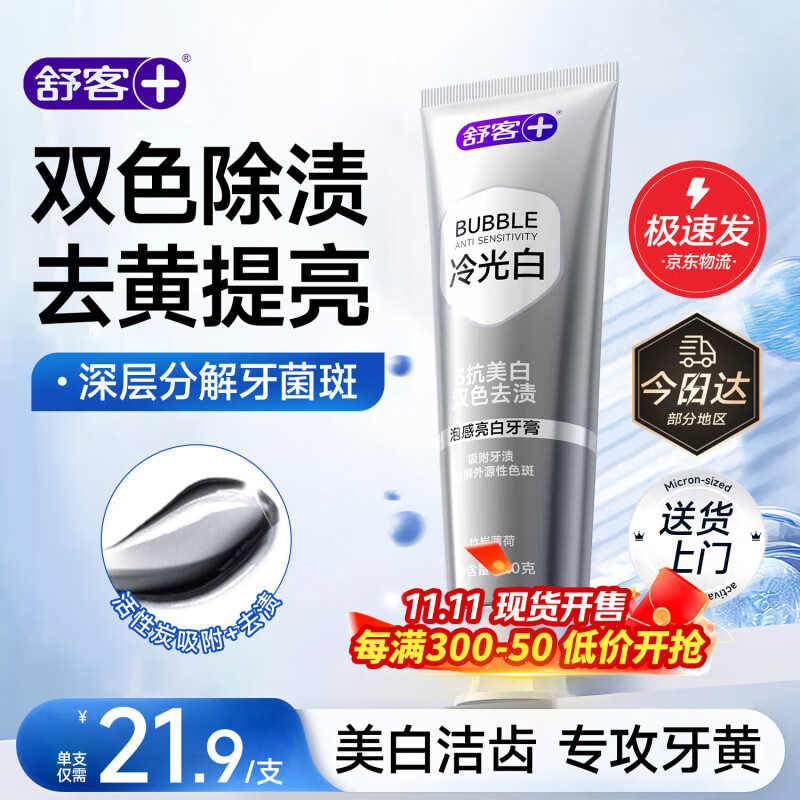 舒客美白牙膏去口气去黄去牙渍去烟渍清新口气含氟防蛀养龈舒敏牙膏 【双色修渍】去黄提亮牙膏120g