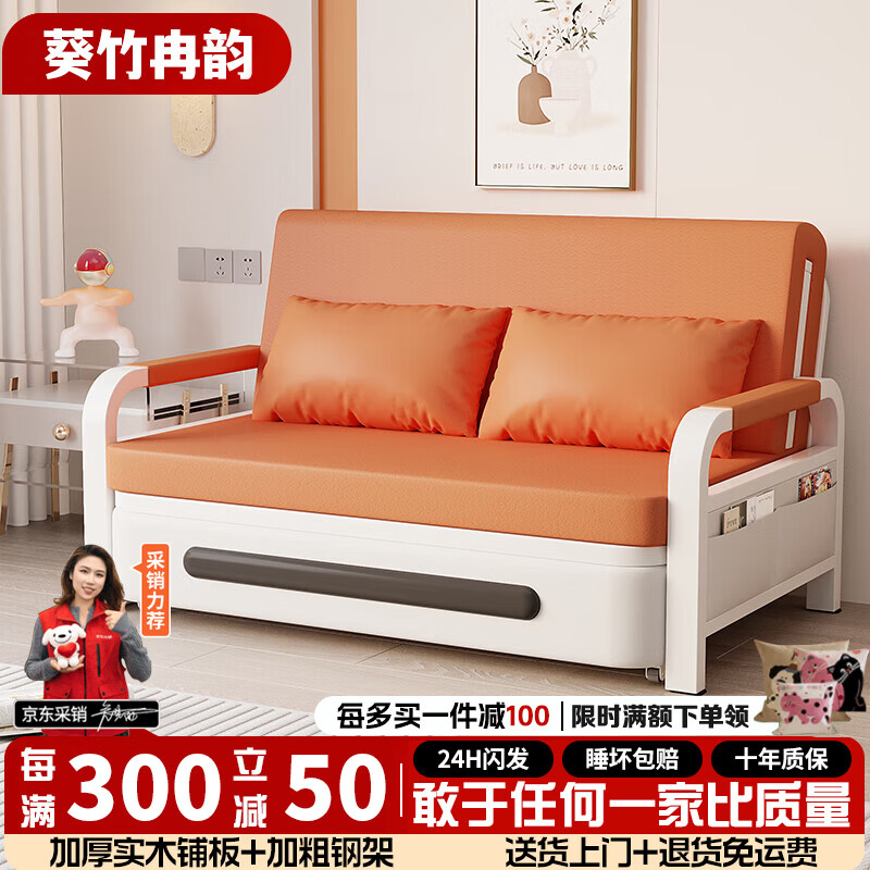 葵竹冉韵沙发床一体两用2025两用小户型伸缩床客厅阳台多功能床新款折叠床 【0.82m普通款】+7CM海绵 【默认爱马橙色】