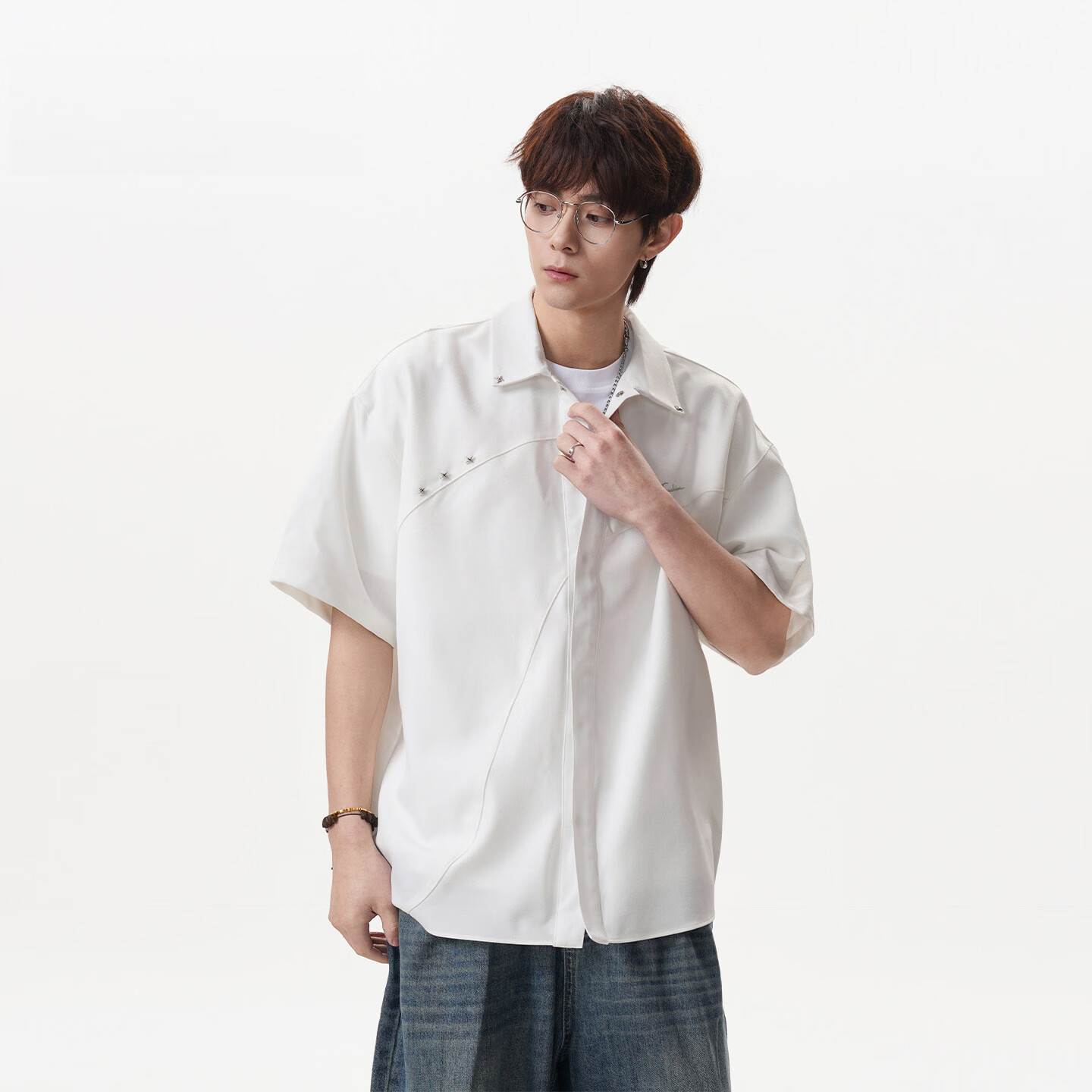 NEW OR MODE美式设计感短袖衬衫男士夏季新款宽松休闲衬衣百搭情侣开衫外套 白色【高品质】 M 【建议90-110斤】