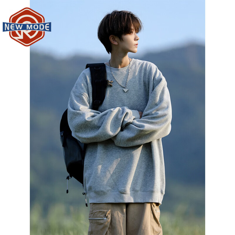 NEW OR MODE美式重磅圆领卫衣男春秋新款复古潮流宽松大码青少年休闲上衣外套 浅灰色【高品质】 2XL 【建议140-160斤】