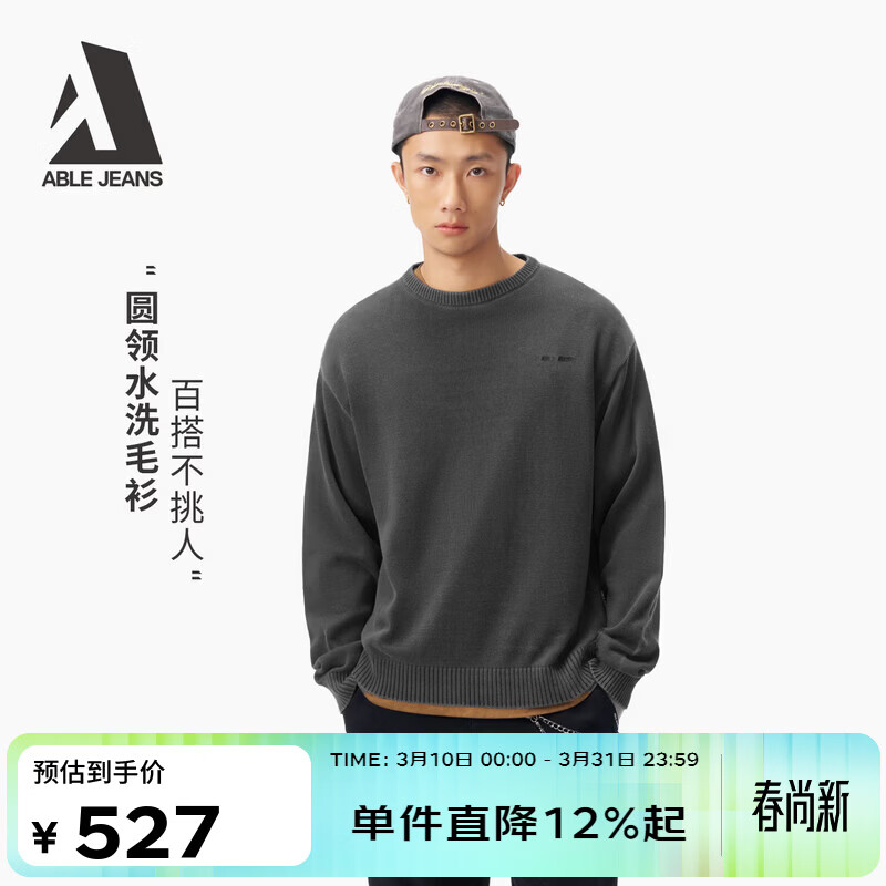 ABLE JEANS 26春新款男士内搭上装套头圆领水洗毛衣针织打底衫 矿石灰 /891001 S