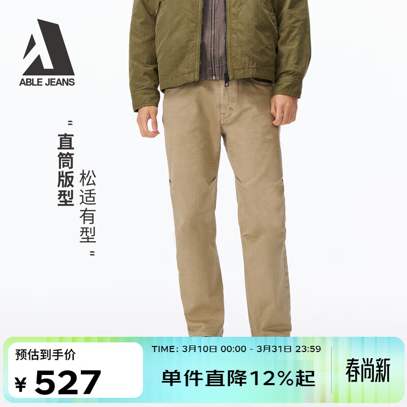 ABLE JEANS【直筒滑板裤】26春新款牛仔裤休闲简约男裤宽松复古直筒裤857001 典卡其 28