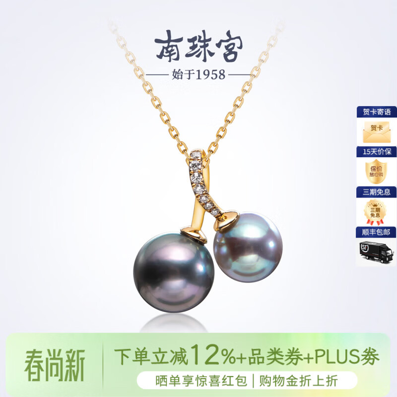 南珠宫漾影925银大溪地海水珍珠吊坠高级感新年礼物送妈妈 12.0-13.0mm 925银海水珍珠吊坠