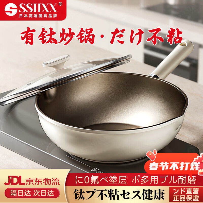SSIIXX日本品牌有钛不粘锅0氟涂层煎锅炒菜锅厨房通用炉灶平底锅家用加 炒锅+锅盖 30cm