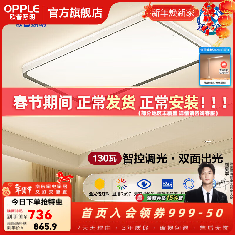 欧普照明(OPPLE)客厅灯主灯大灯高显色吸顶灯现代简约卧室一体灯具套餐APP智控 A【全光谱智控】130瓦/7574lm