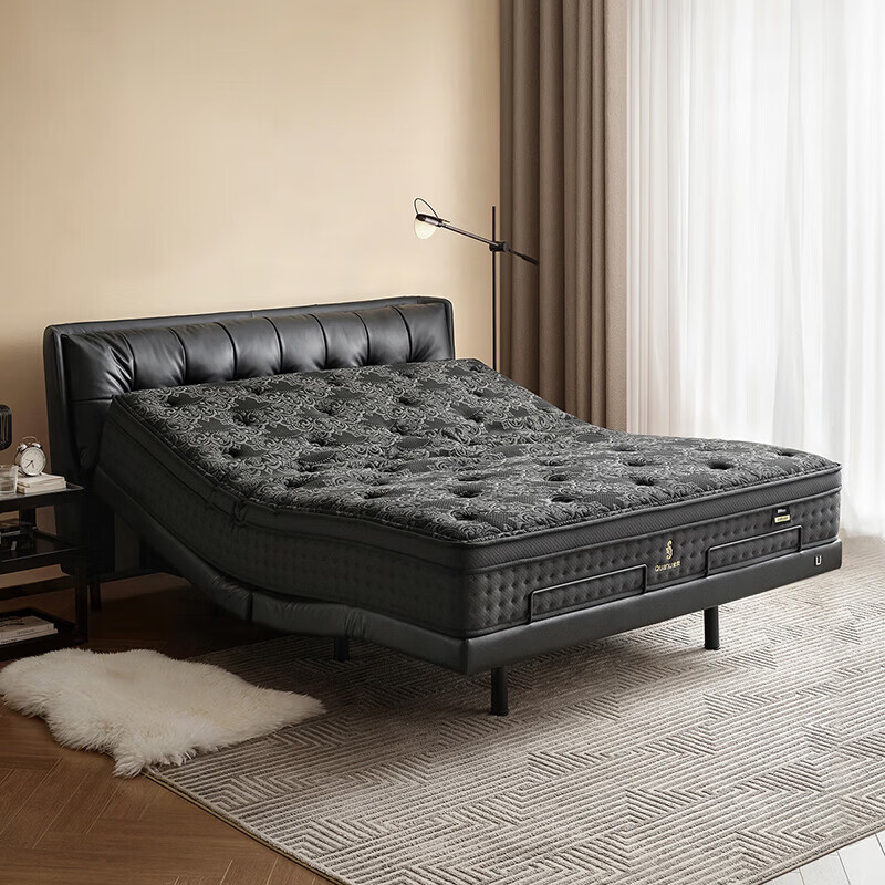全友(QUANU)家居【U标·潮汐智能床】电动皮艺床黑色主卧双人床头层牛皮大床 黑色|纳帕皮|智能单床+床垫 1.8米