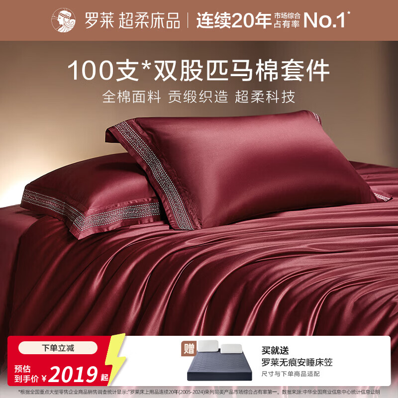 罗莱家纺100支双股匹马棉全棉纯棉四件套简约轻奢酒店风 曼云倾-红色 1.8米床 床单款 (被套220*250cm)
